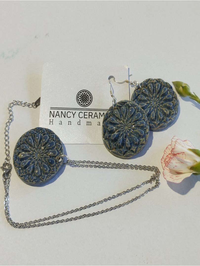 Χειροποίητο κεραμικό σετ, κολιέ και σκουλαρίκια “Rose”
