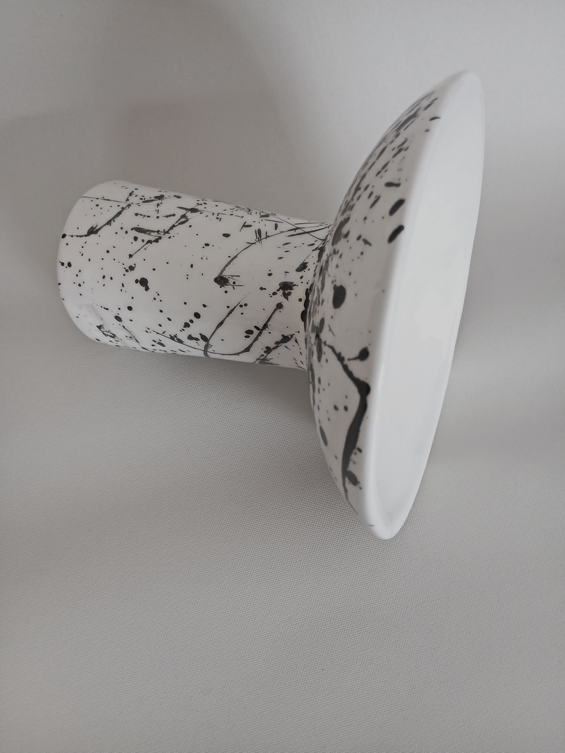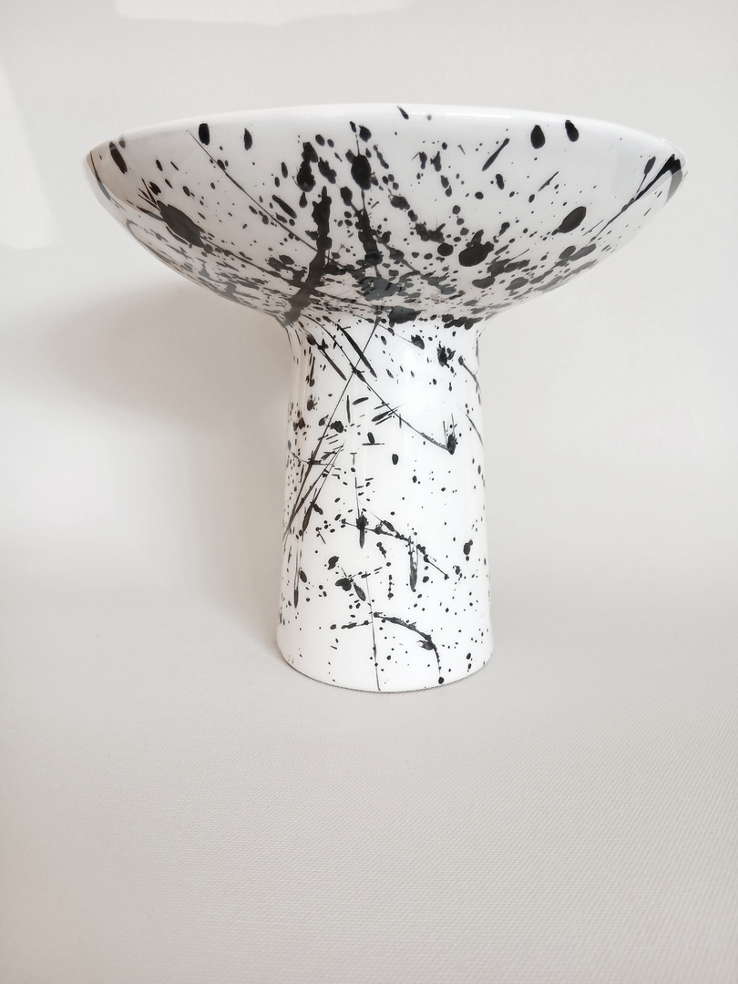 Κεραμική χειροποίητη φρουτιέρα με λευκό σμάλτο και μαύρο χρώμα