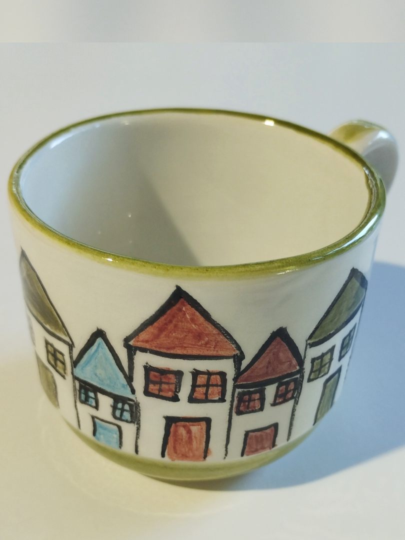 Κεραμική Χειροποίητη Κούπα ” χρωματιστά σπιτάκια ”