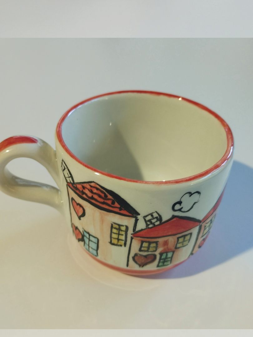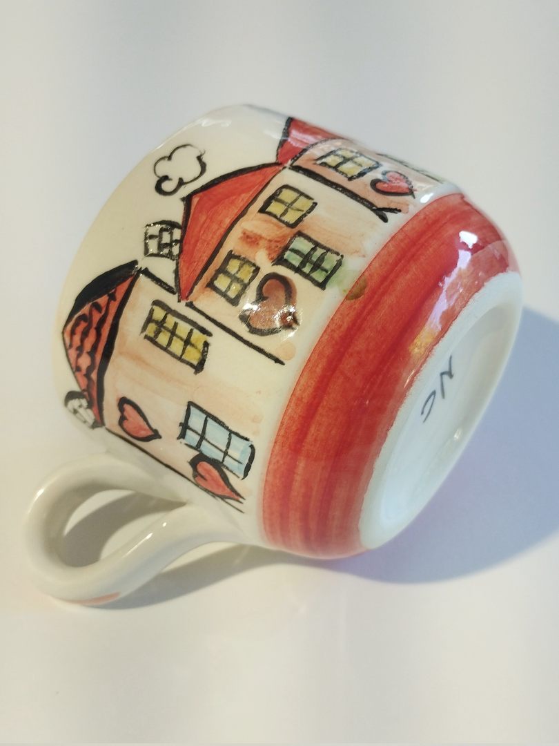 Κεραμική Χειροποίητη Κούπα ” σπιτάκια με κόκκινη στέγη ”
