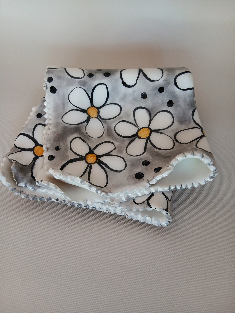 Κεραμικό σουπλά κουτάλας σε σχήμα πετσέτας με ζωγραφισμένες λευκές μαργαρίτες