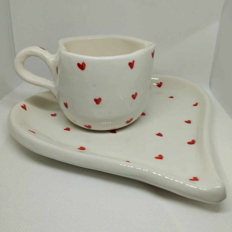 Κεραμική κούπα με πιάτο σε σχήμα καρδιάς!