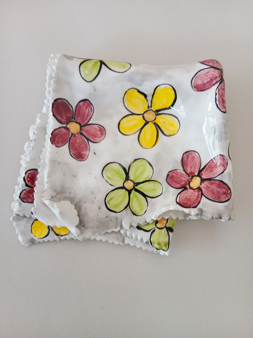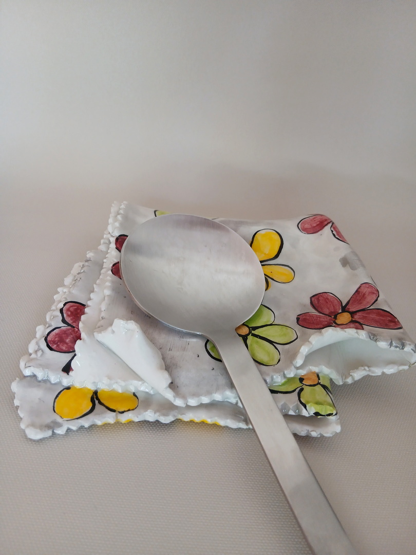 Κεραμικό σουπλά κουτάλας σε σχήμα πετσέτας με ζωγραφισμένες πολύχρωμες μαργαρίτες