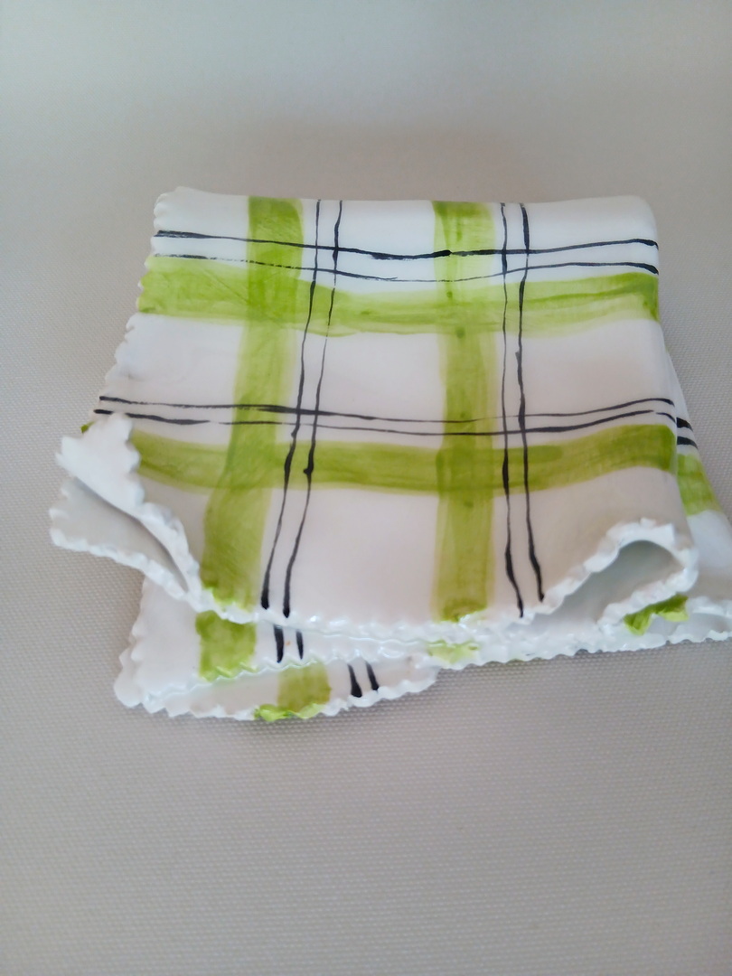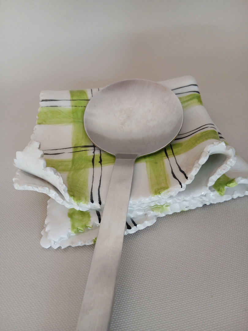 Κεραμικό σουπλά κουτάλας σε σχήμα πετσέτας με καρό πράσινο μοτίβο